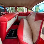 Stepping inside, you’ll be greeted by the same red and ivory color scheme that continues into the interior. The upholstery reflects the era’s design sensibilities with its classic patterns and textures, creating a nostalgic atmosphere that takes you back in time. The spaciousness of the 4-door configuration ensures comfortable journeys, allowing you to bring along family or friends to share in the joy of cruising in this vintage gem.